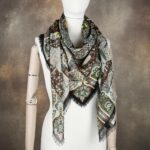 - DescriptionAll our wool & silk print shawls are140x140cm squarehand frayed edgesscreen printed in Como, Italyetamine weave70%wool 30%silkWolff et Descourtis Paris signature in cornerdry clean onlylow irondelivered in our elegant kraft box tied with raphia